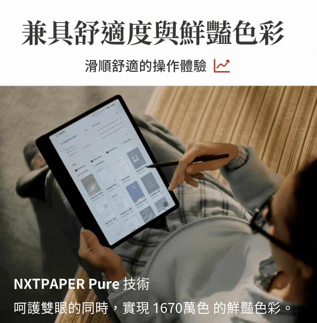 TCL 獨家的「NXTPAPER Pure」技術與 120Hz 高更新率,有效抑制了電子紙常見的延遲與殘影,讓畫面流暢的令人驚豔。
