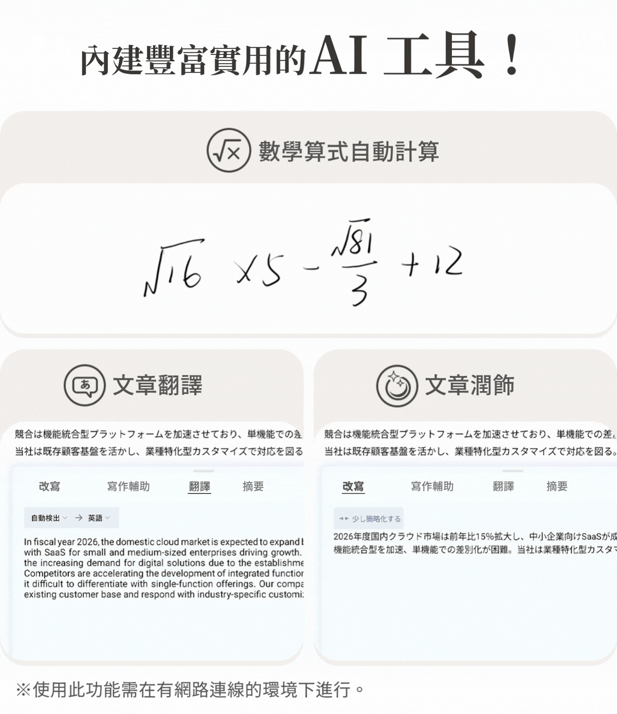 ※「無限使用」提供之範圍,僅限產品出貨時即內建的 AI 功能。未來透過系統更新所新增之功能,可能需另外付費。