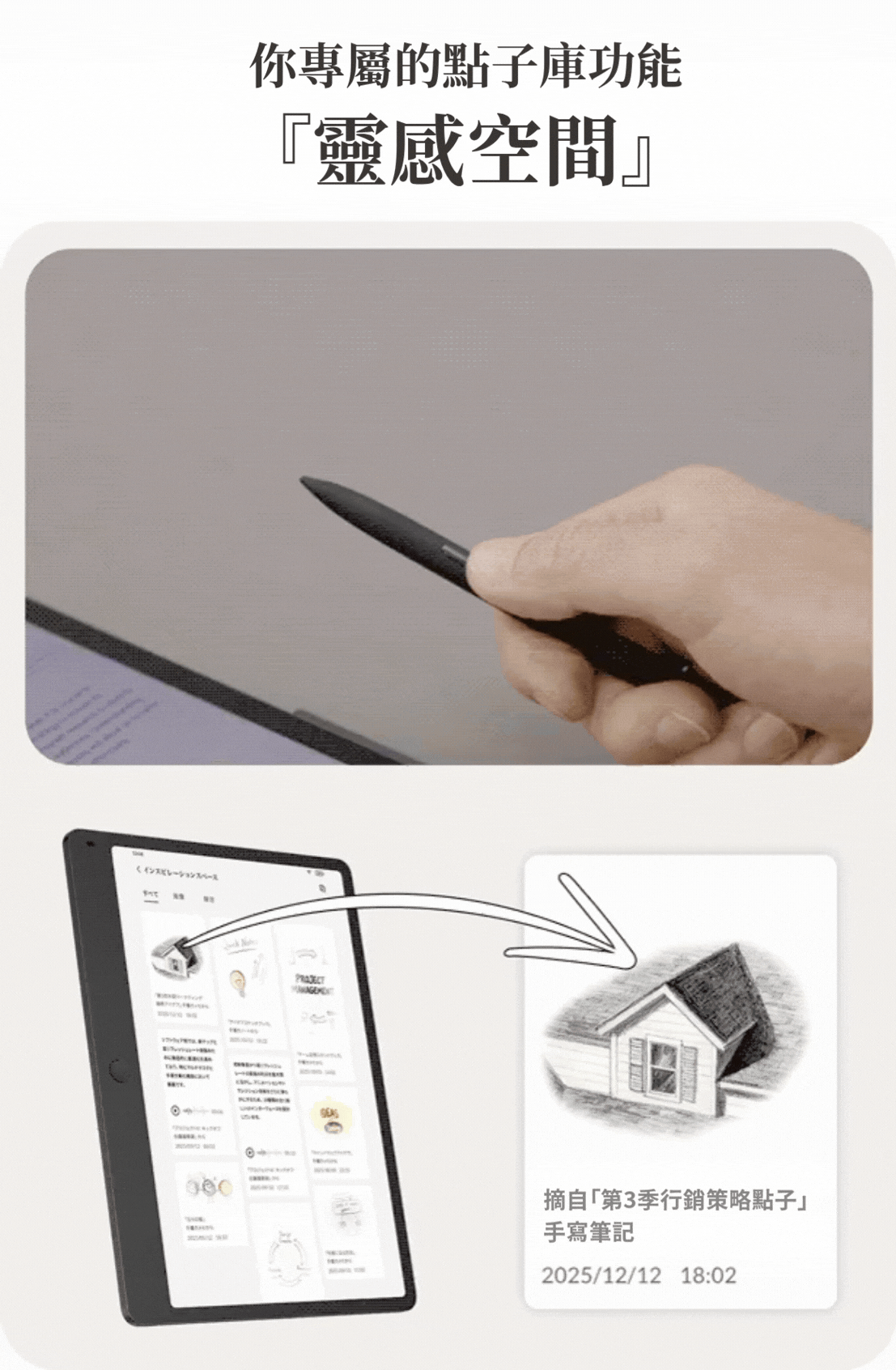 靈感 AI:AI 會將散落的筆記與資訊統整在一起。遇到不清楚的地方,還能透過與 AI 聊天來提問,協助您梳理資訊之間的關聯,並引導出全新的見解。