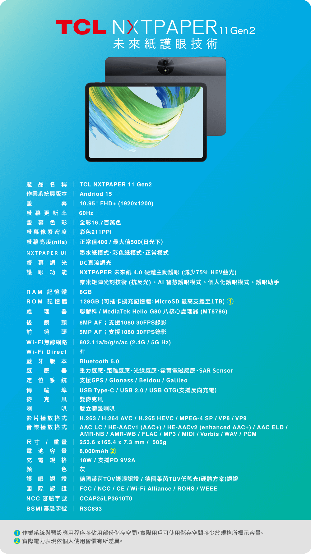 2. 電池數據為內部實驗室測試結果,實際續航力會因個人使用情況而異。