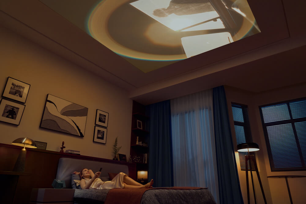 無論是在臥室舒適地躺著享受「天花板電影院」,還是在客廳投射整面牆的震撼影像;甚至在咖啡廳、露營區等戶外場景,只要輕輕一轉,就能調整出最佳觀影角度。