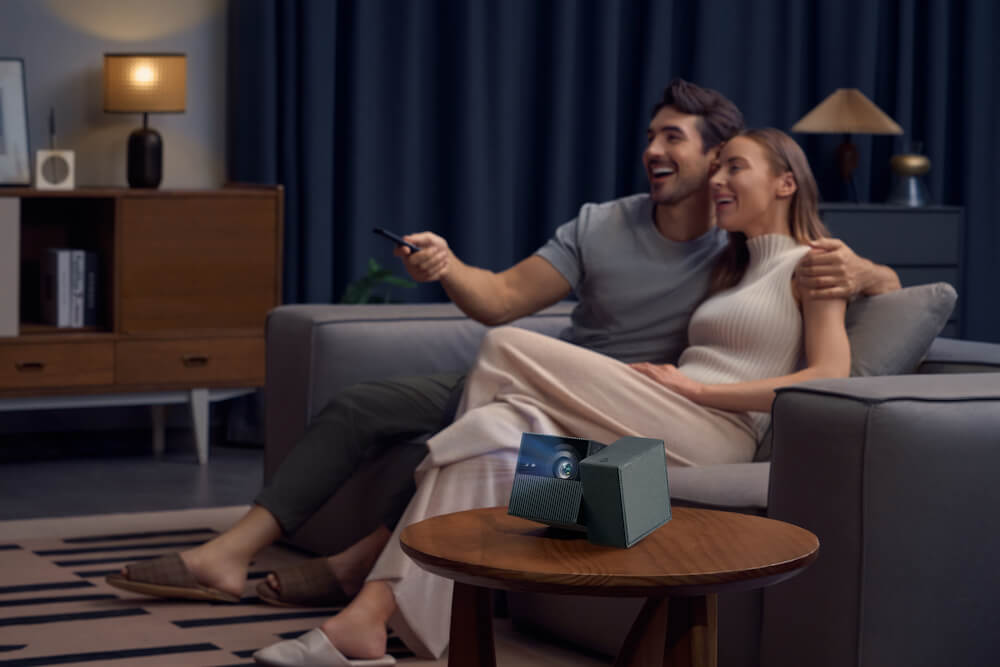 內建 Eye Protection 智慧護眼功能,當偵測到人或寵物經過鏡頭前方時,系統會自動調整光源亮度,避免強光直射眼睛。貼心的安全設計,讓全家大小都能安心地長時間享受影音娛樂。不為場域所限,隨手一放,即是完美的開演時刻。