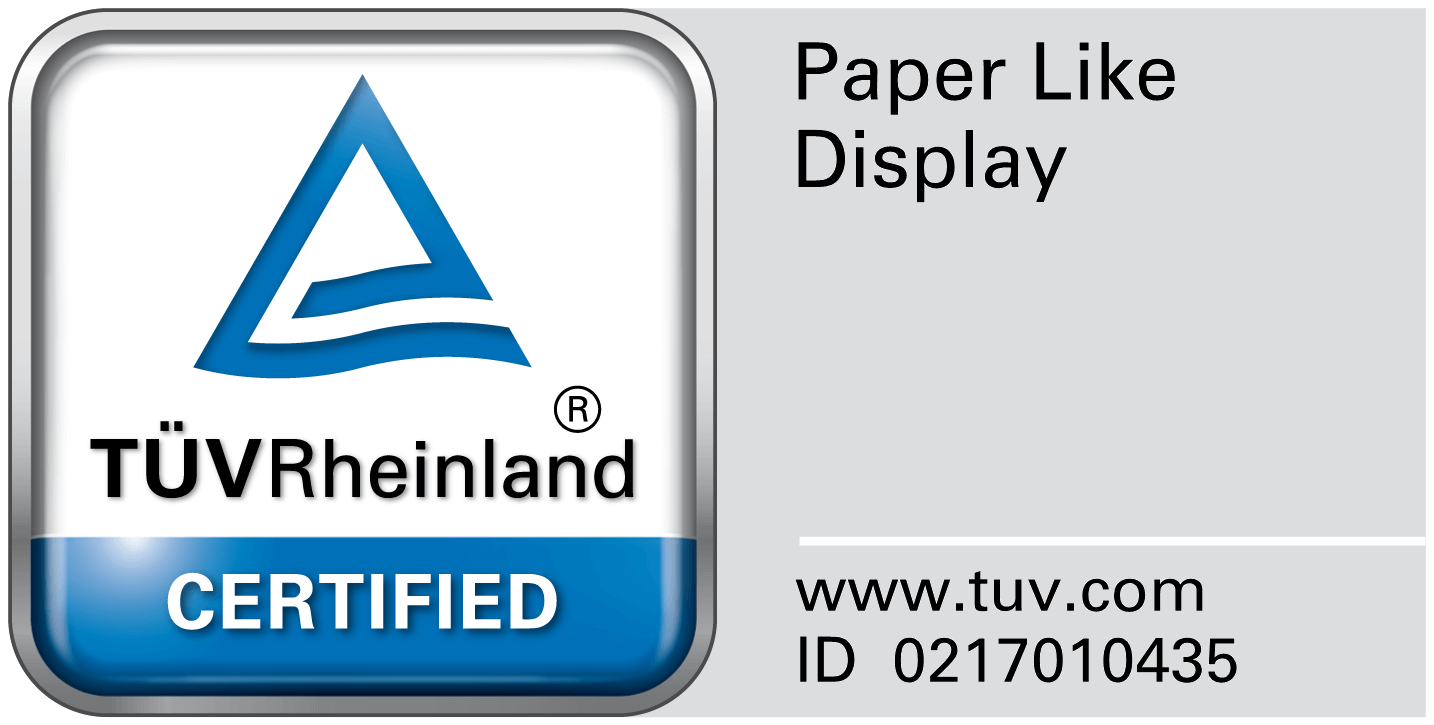 在智慧型手機領域中居於領先地位。此技術已獲得 TÜV Rheinland(德國萊因) 的紙感顯示認證,以及 SGS 的手寫精準度認證,提供如真實紙張般自然、舒適的書寫與閱讀體驗。